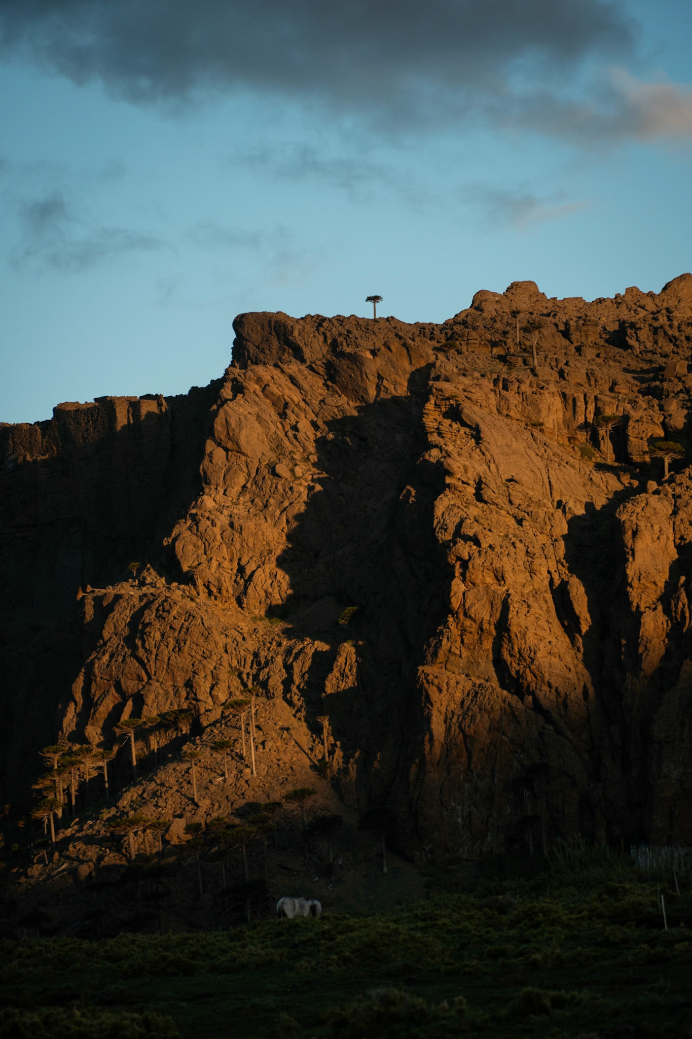 The road was quiet and pleasant and initially crossed more pampas before climbing up to stunning Araucaria clad slopes and winding gorges. Unfortunately the wind was diabolical and only grew. We pedalled hard to move downhill on the few sections of this. We moved at 5kph. It was grim. Our plans to reach Lonquimay were soon dashed and we called in to Horses and Huskies to see if we could camp. They had a wee cabin, 30,000 pesos was more than we were at all comfortable with spending but the absolutely stunning scenery, cosy cabin with a woodfire and worsening weather made it rather necessary. Our legs were sore perhaps from all the time in buses recently where our high altitude and high-pass fitness had evaporated.