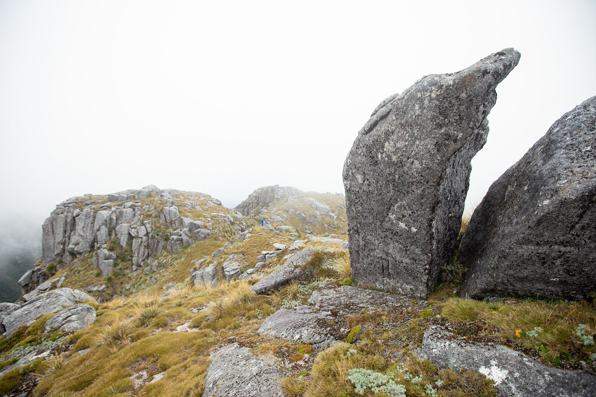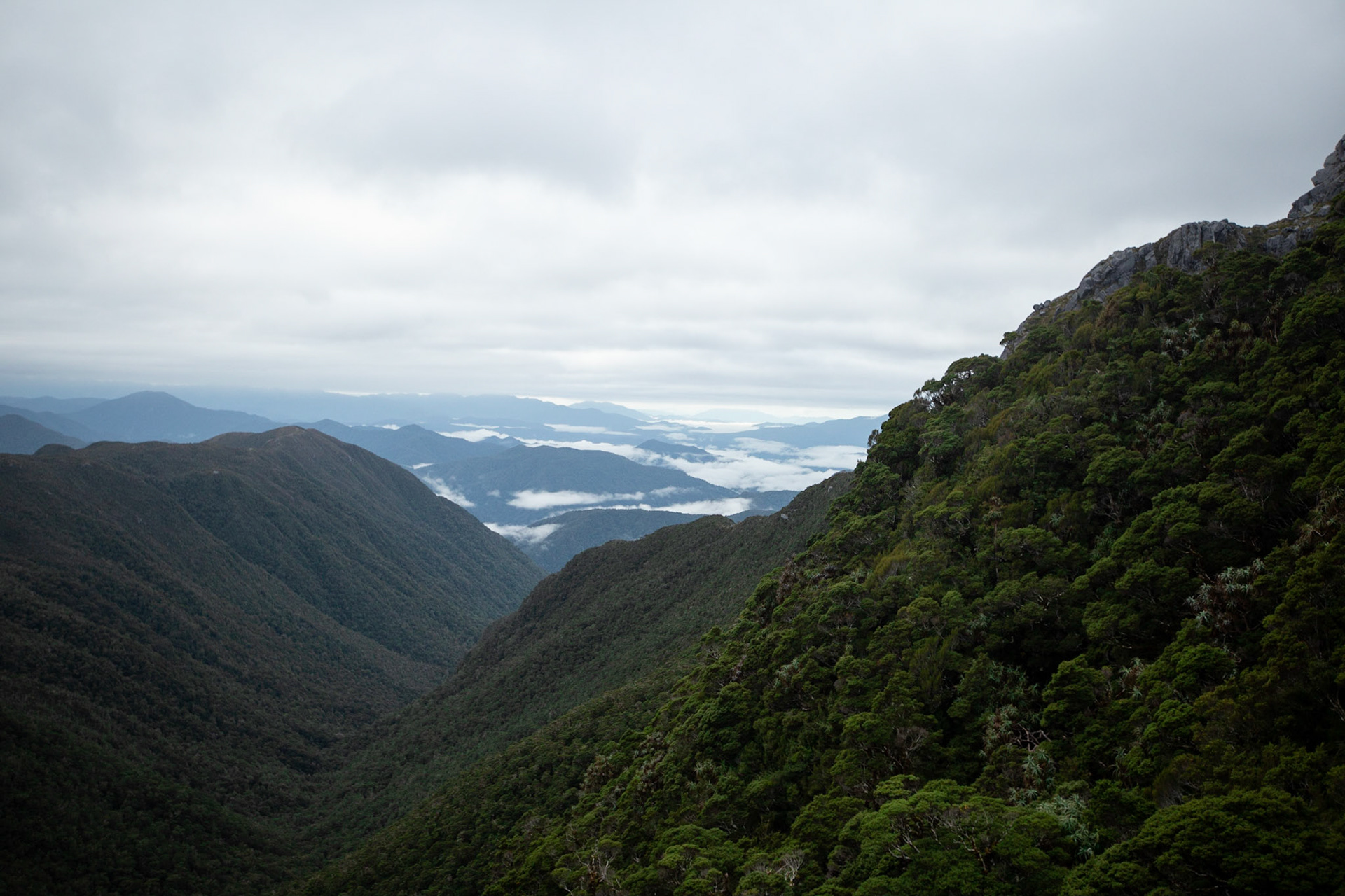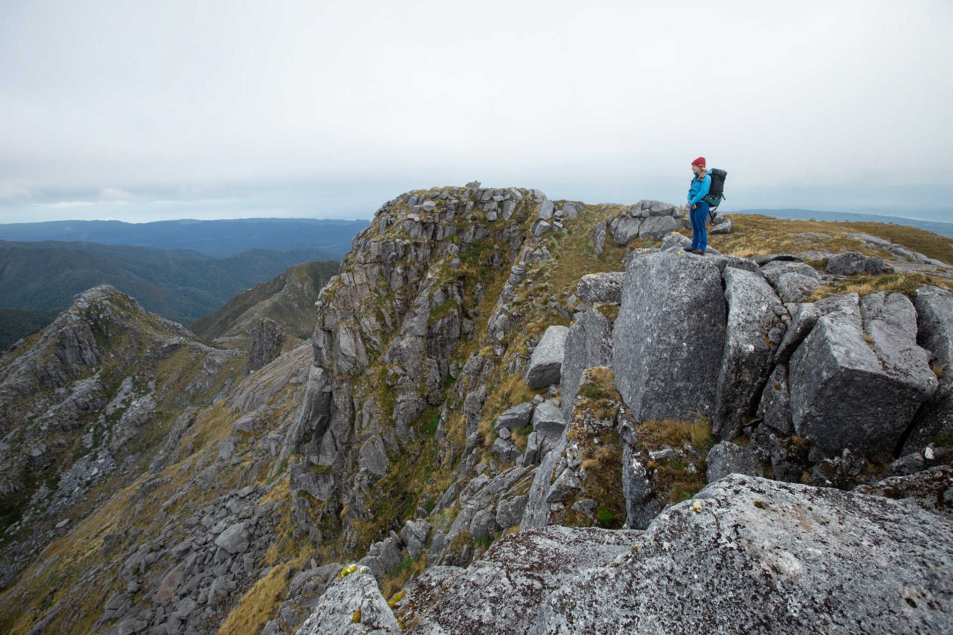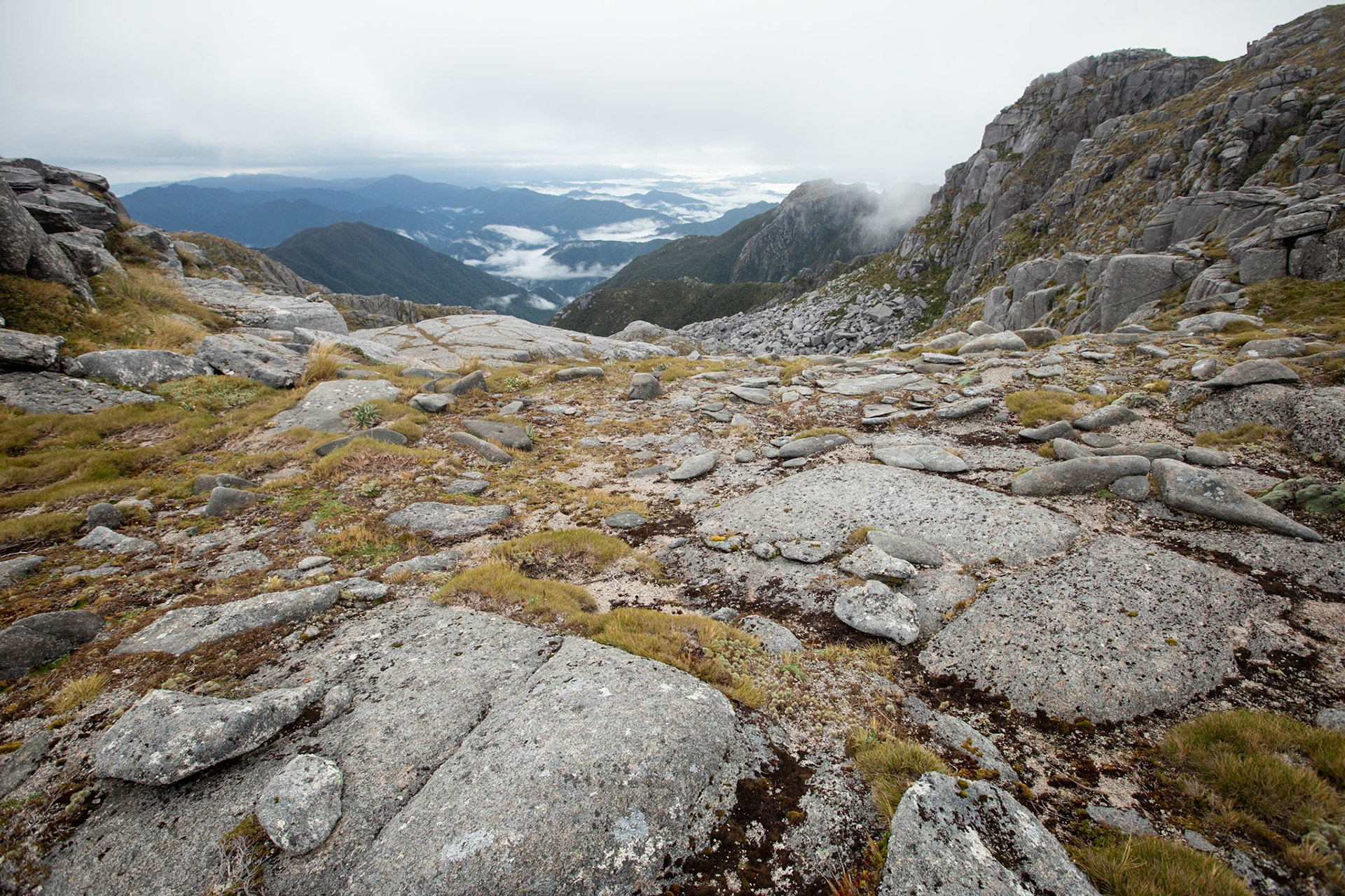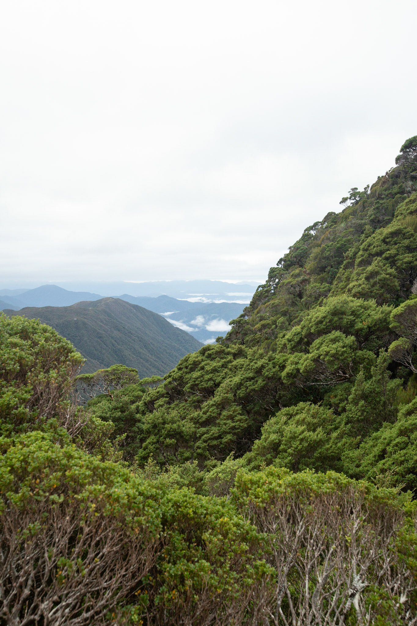 Camping on the tops above Buckland Peaks Hut in Late Autumn, looking along the precipitous Paparoa range which will have to wait for another trip in more stable weather.