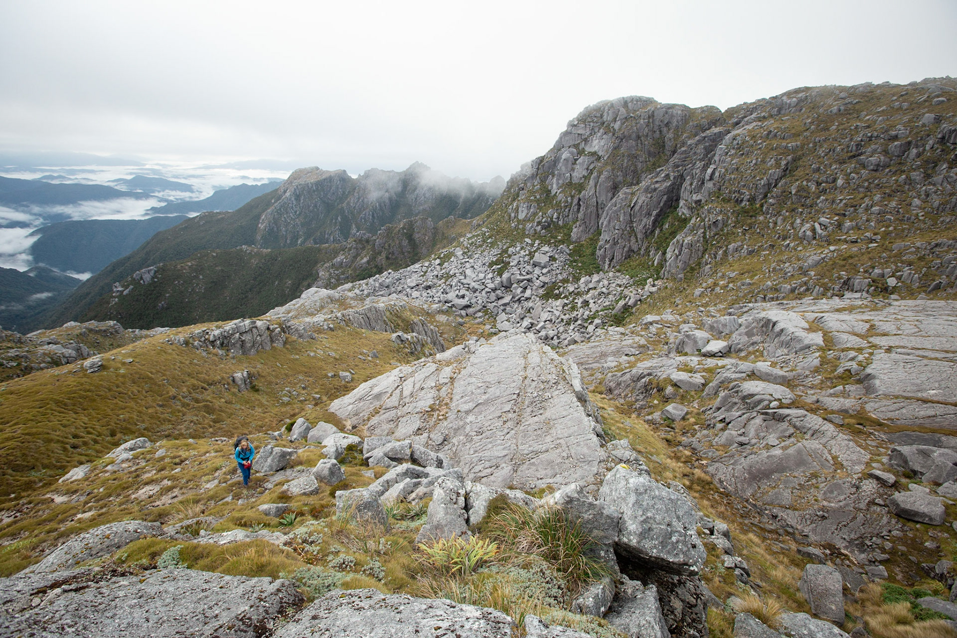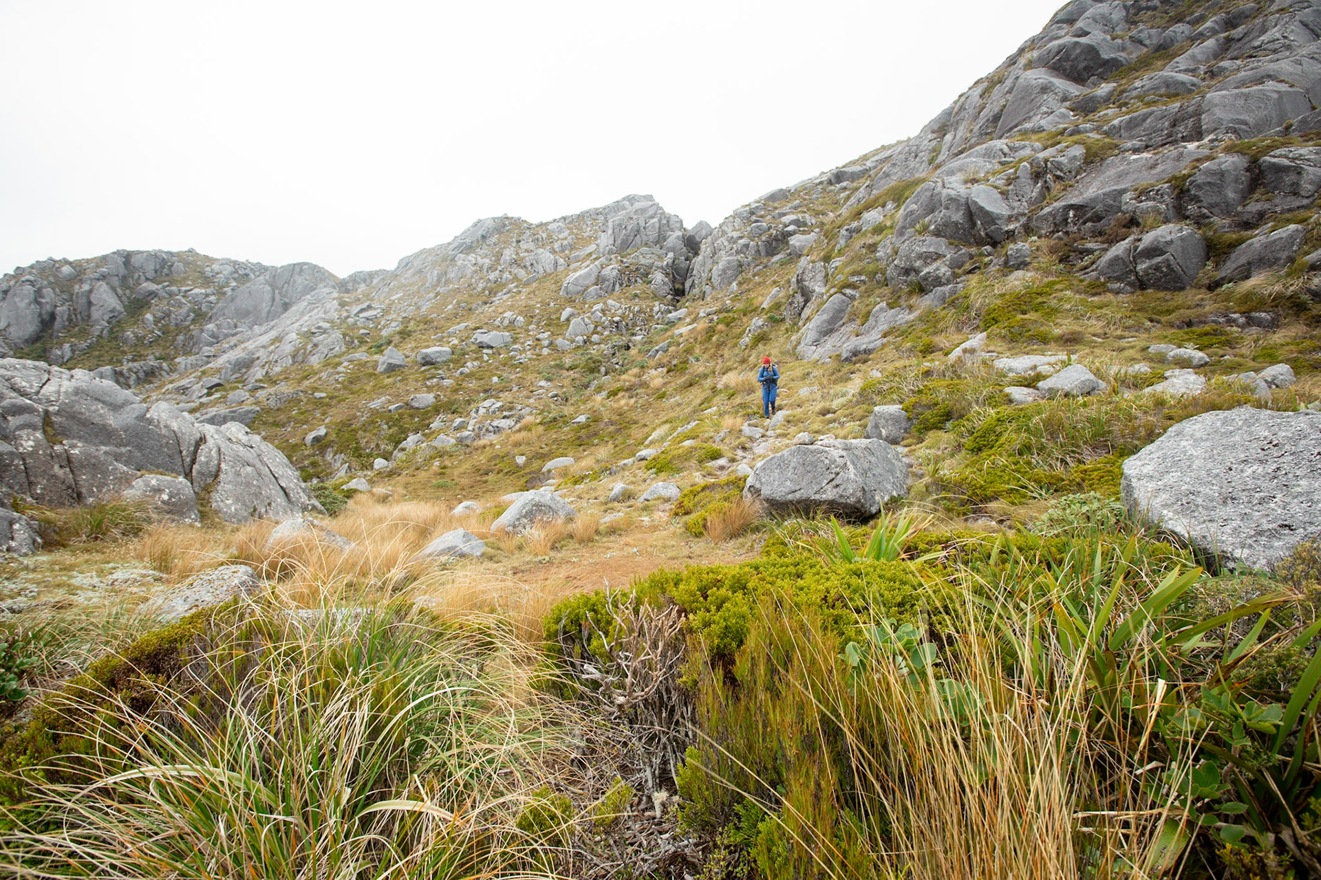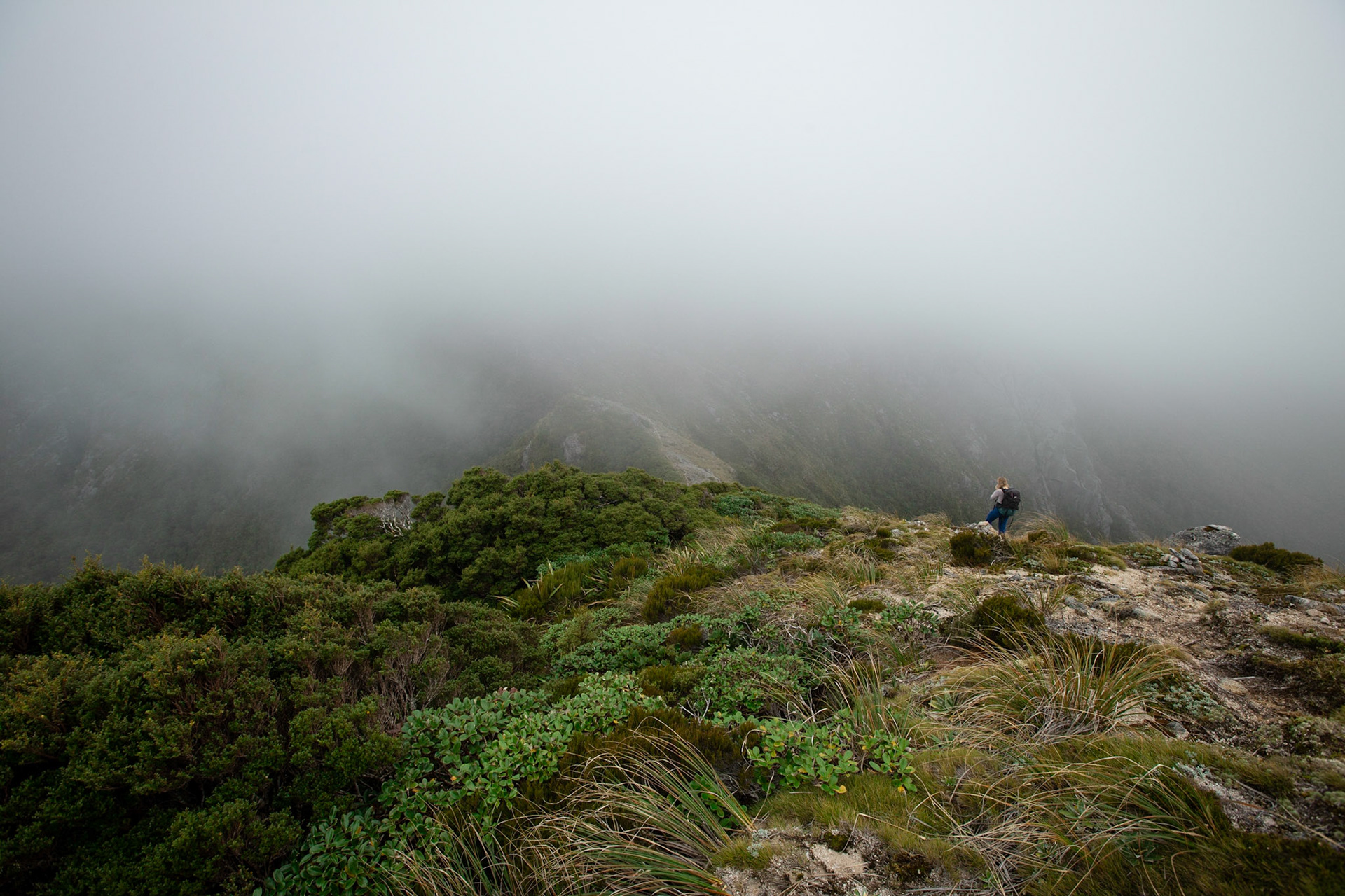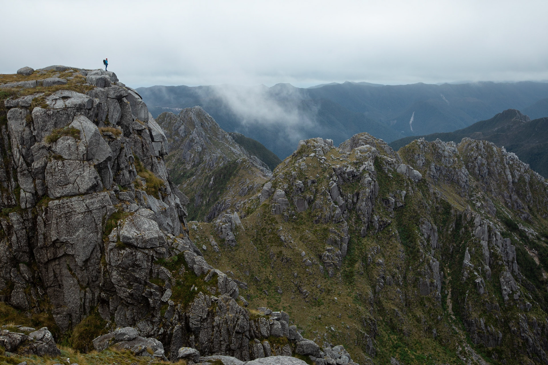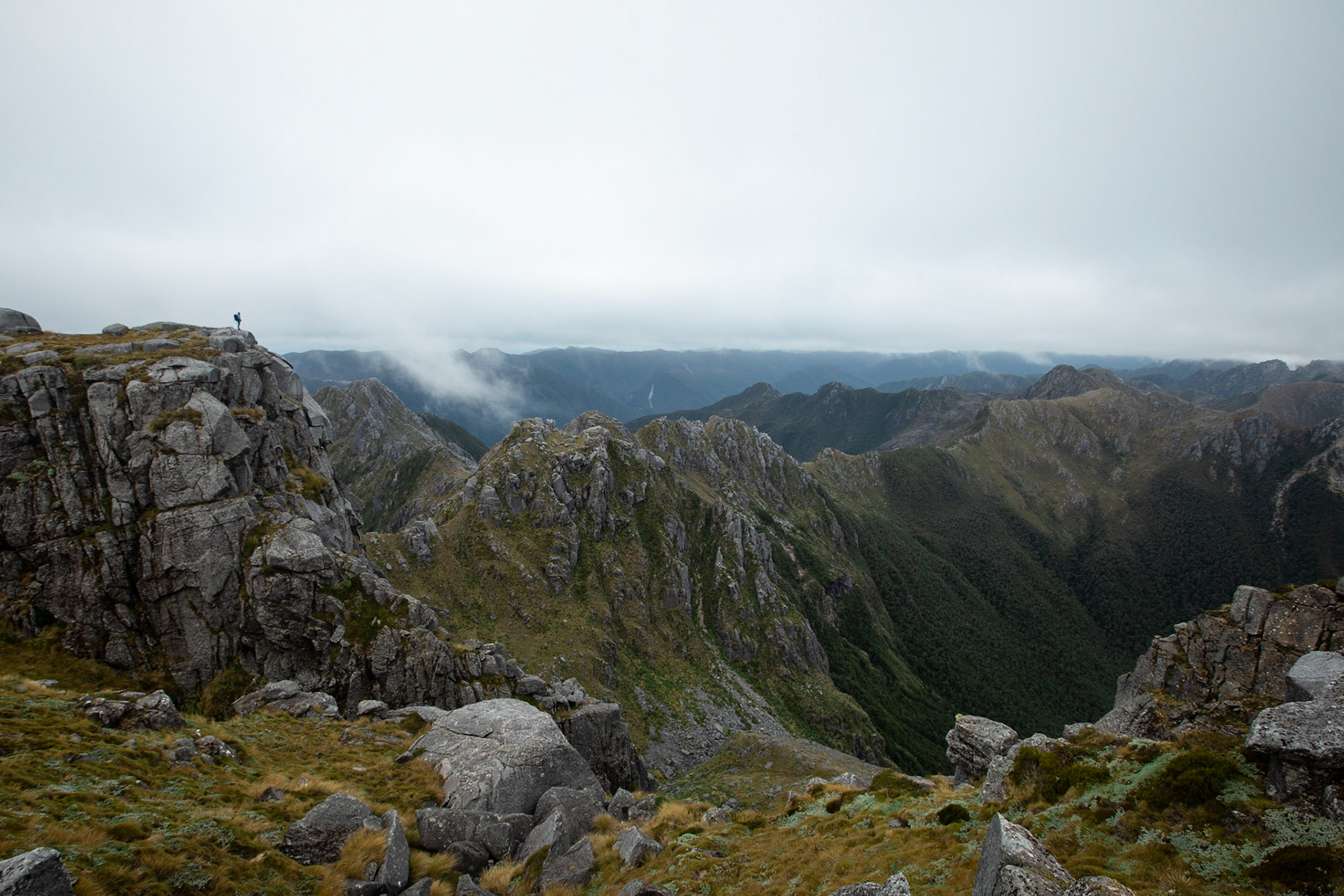 Camping on the tops above Buckland Peaks Hut in Late Autumn, looking along the precipitous Paparoa range which will have to wait for another trip in more stable weather.