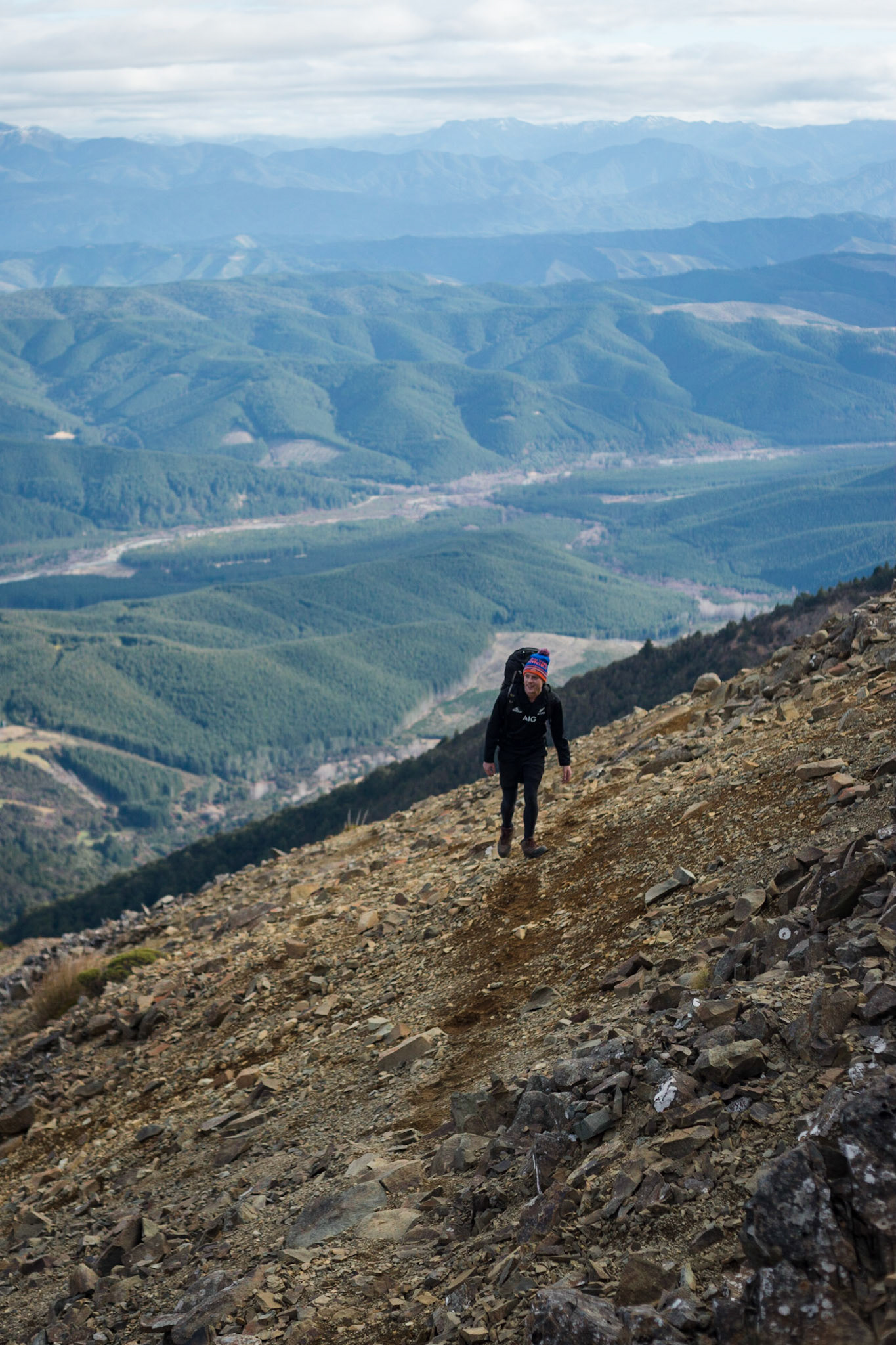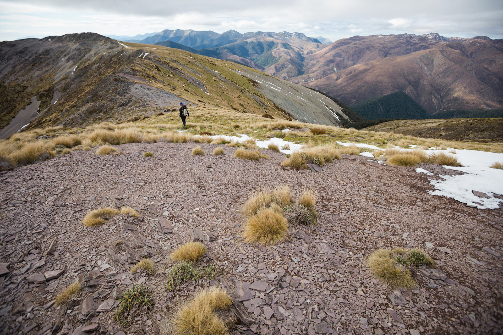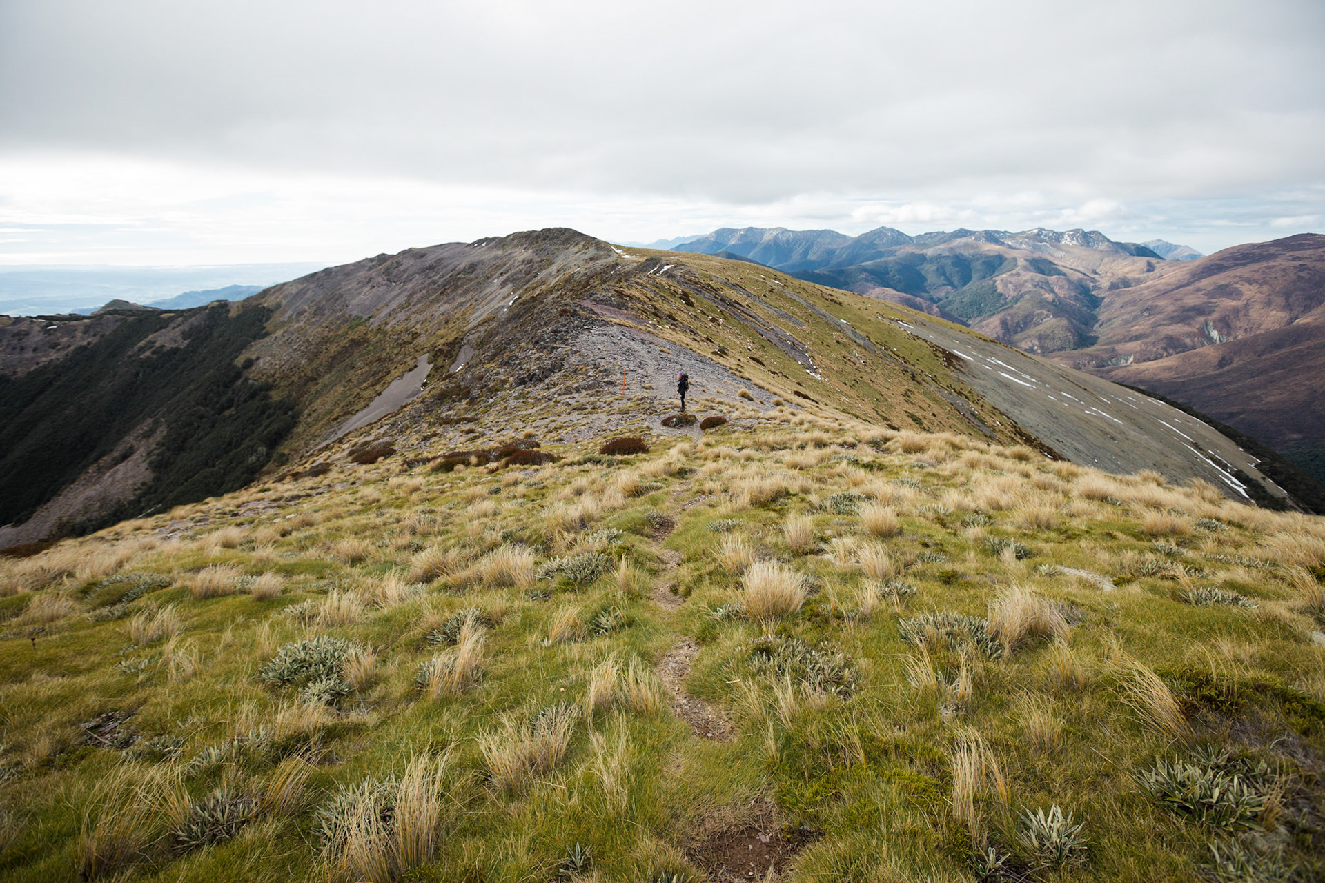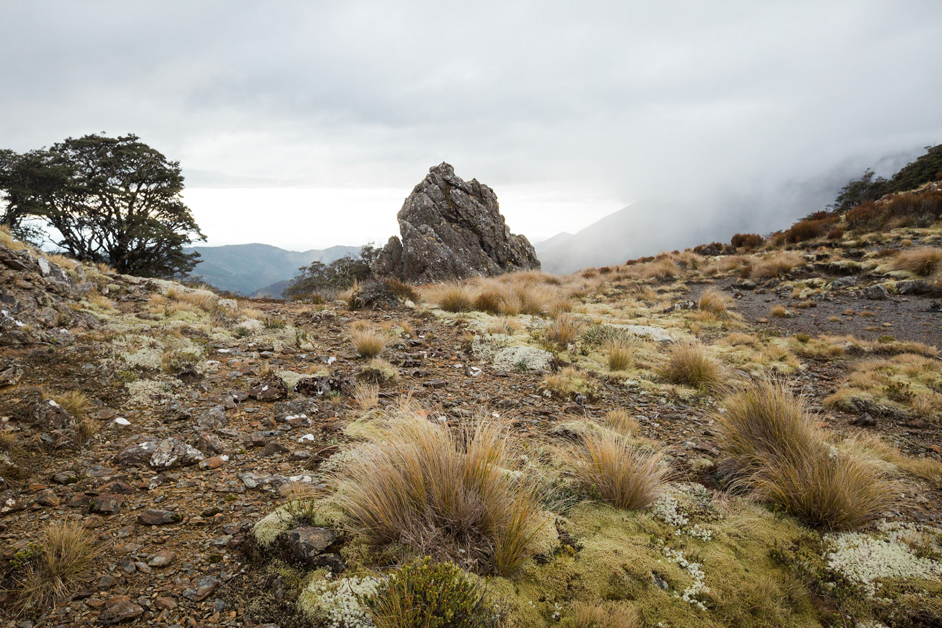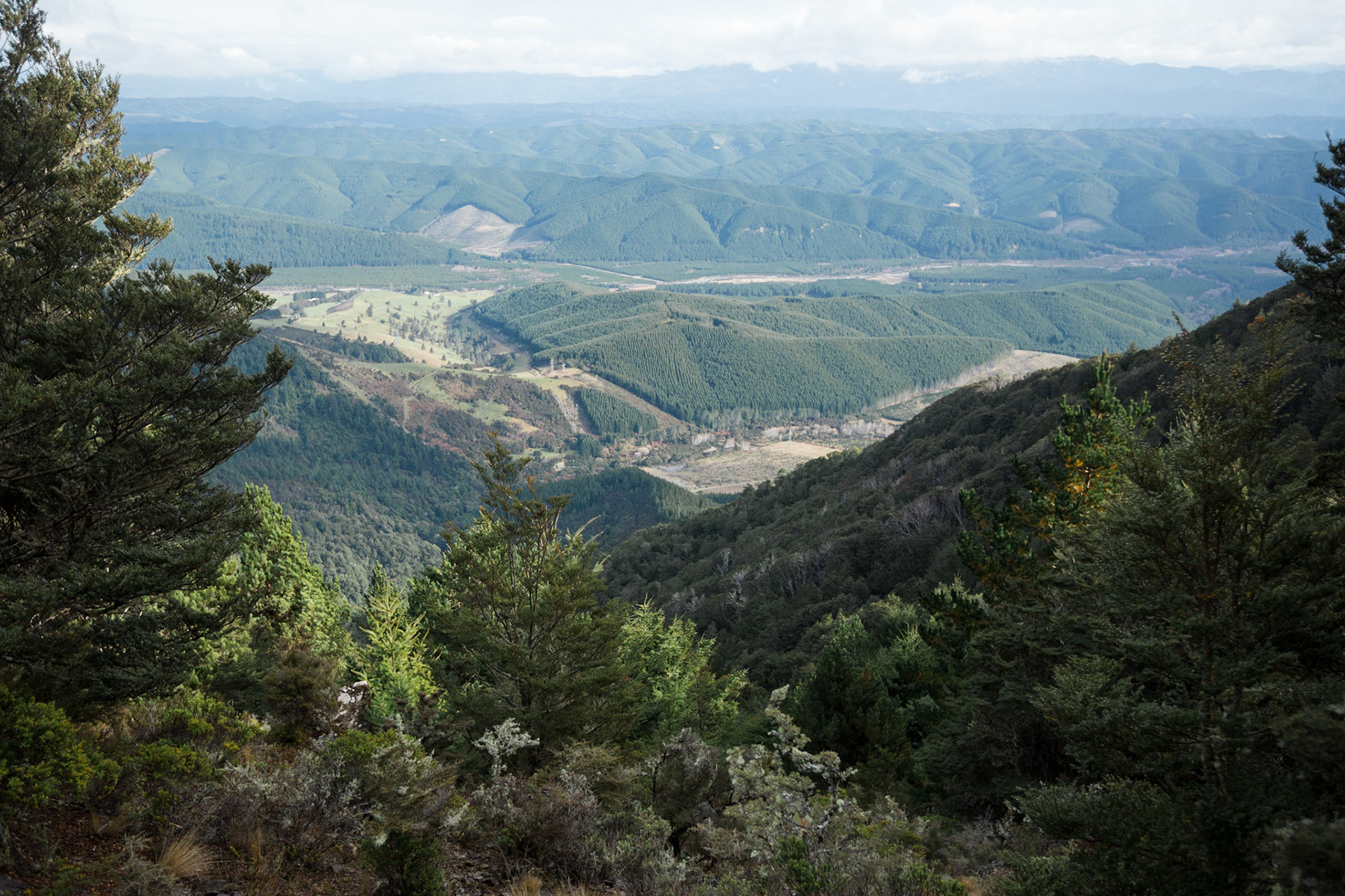 A three day wander into the Red Hills of Mt. Richmond Forest Park. With murky weather forecast we settled on a sedate trip entering from Inwood's lookout and walking in to Hunters Hut on Friday. Walking up Mt. Ellis and back in misty drizzle on Saturday and then back out to Inwoods on Sunday morning. Hunter's Hut is a stunning little 8 bunker standard DOC hut with a good firebox and plenty of firewood nearby. An overnighter from Inwood's lookout would make a very pleasant weekend however the descent off the Gordon Range into the Motueka Left Branch valley is steep and often slippery, not great for young trampers. I must return in better weather to fully explore the Red Hills range proper.