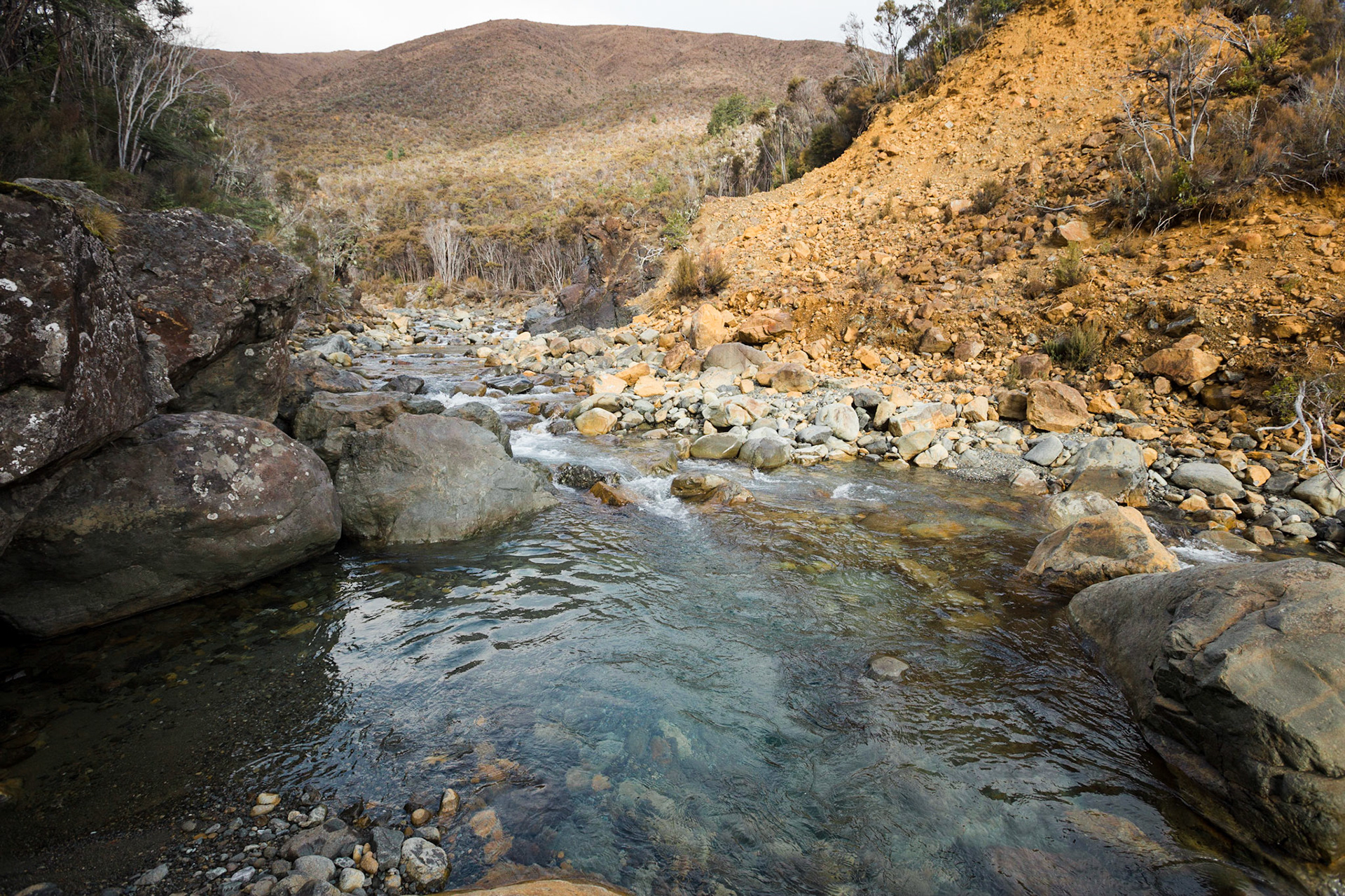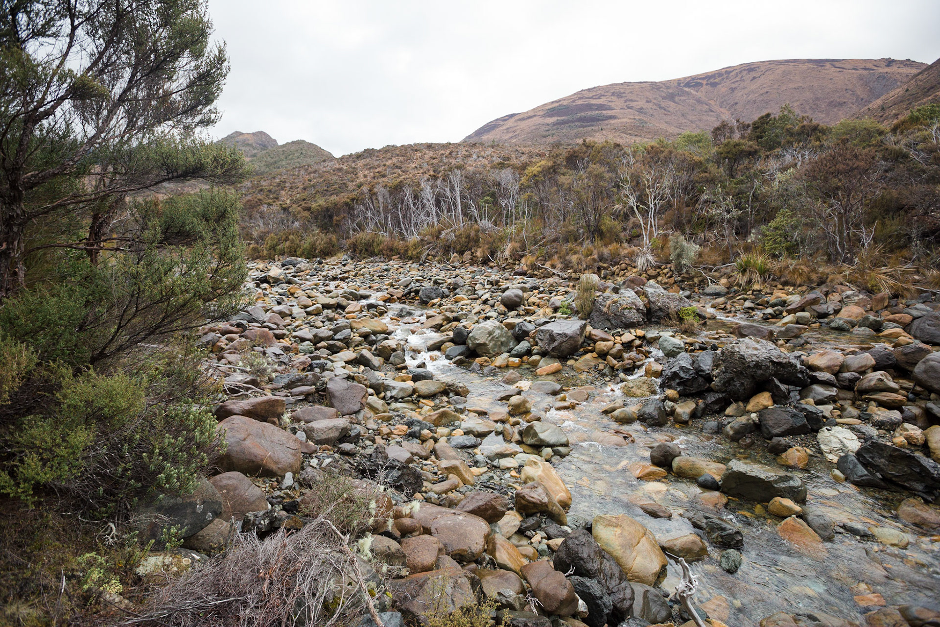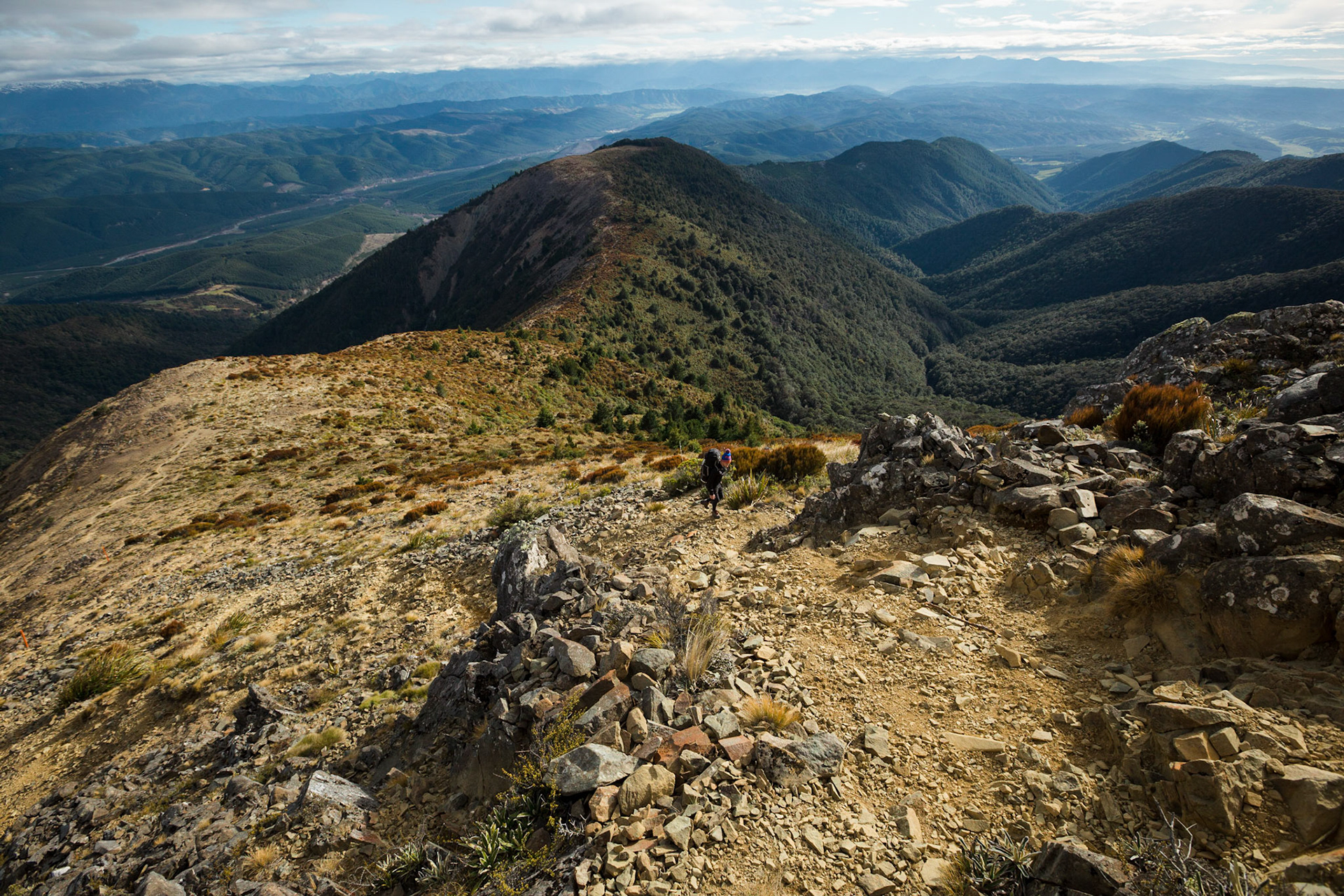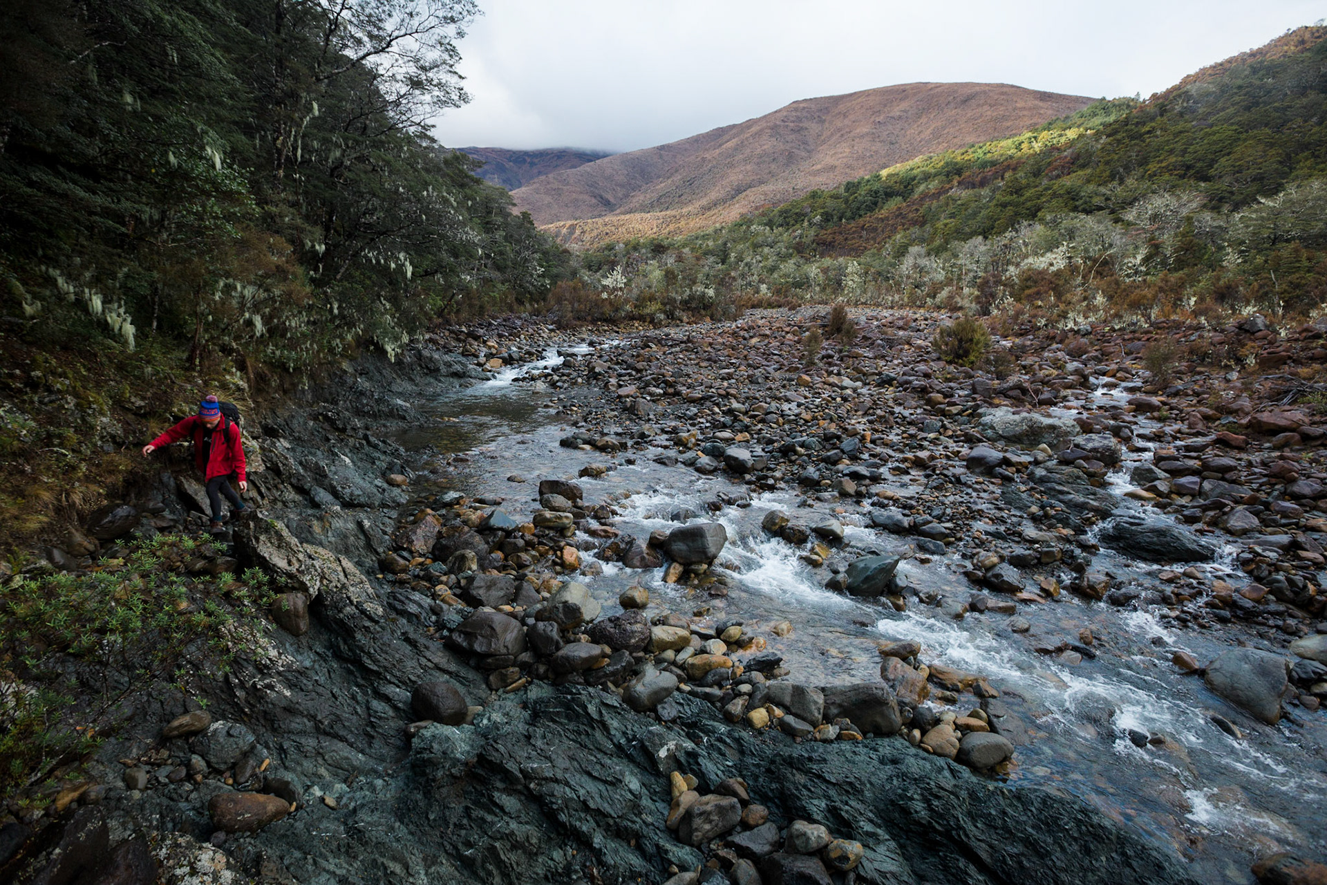 A three day wander into the Red Hills of Mt. Richmond Forest Park. With murky weather forecast we settled on a sedate trip entering from Inwood's lookout and walking in to Hunters Hut on Friday. Walking up Mt. Ellis and back in misty drizzle on Saturday and then back out to Inwoods on Sunday morning. Hunter's Hut is a stunning little 8 bunker standard DOC hut with a good firebox and plenty of firewood nearby. An overnighter from Inwood's lookout would make a very pleasant weekend however the descent off the Gordon Range into the Motueka Left Branch valley is steep and often slippery, not great for young trampers. I must return in better weather to fully explore the Red Hills range proper.