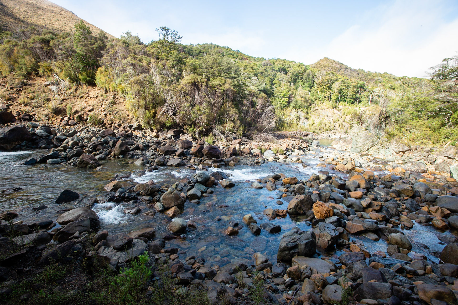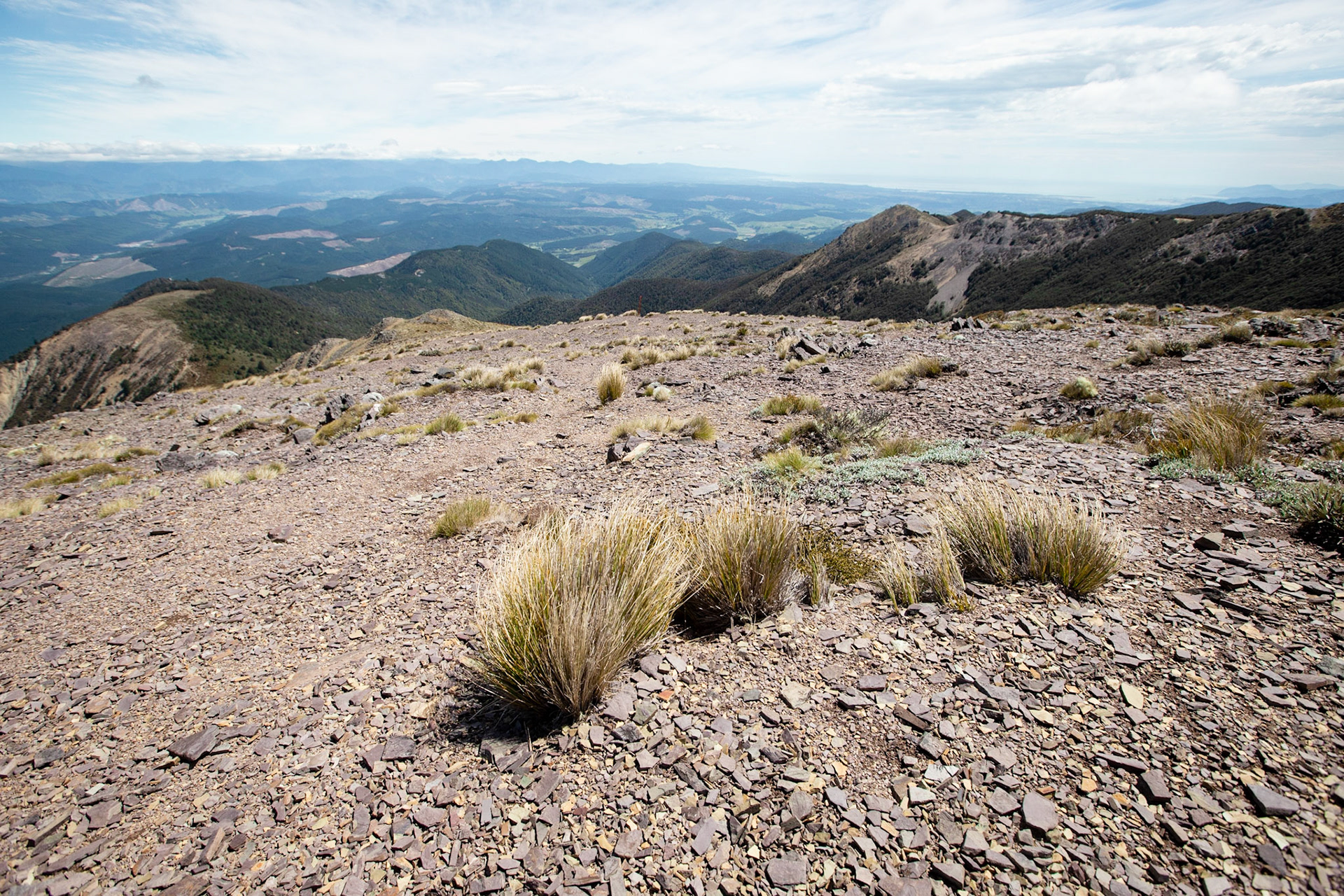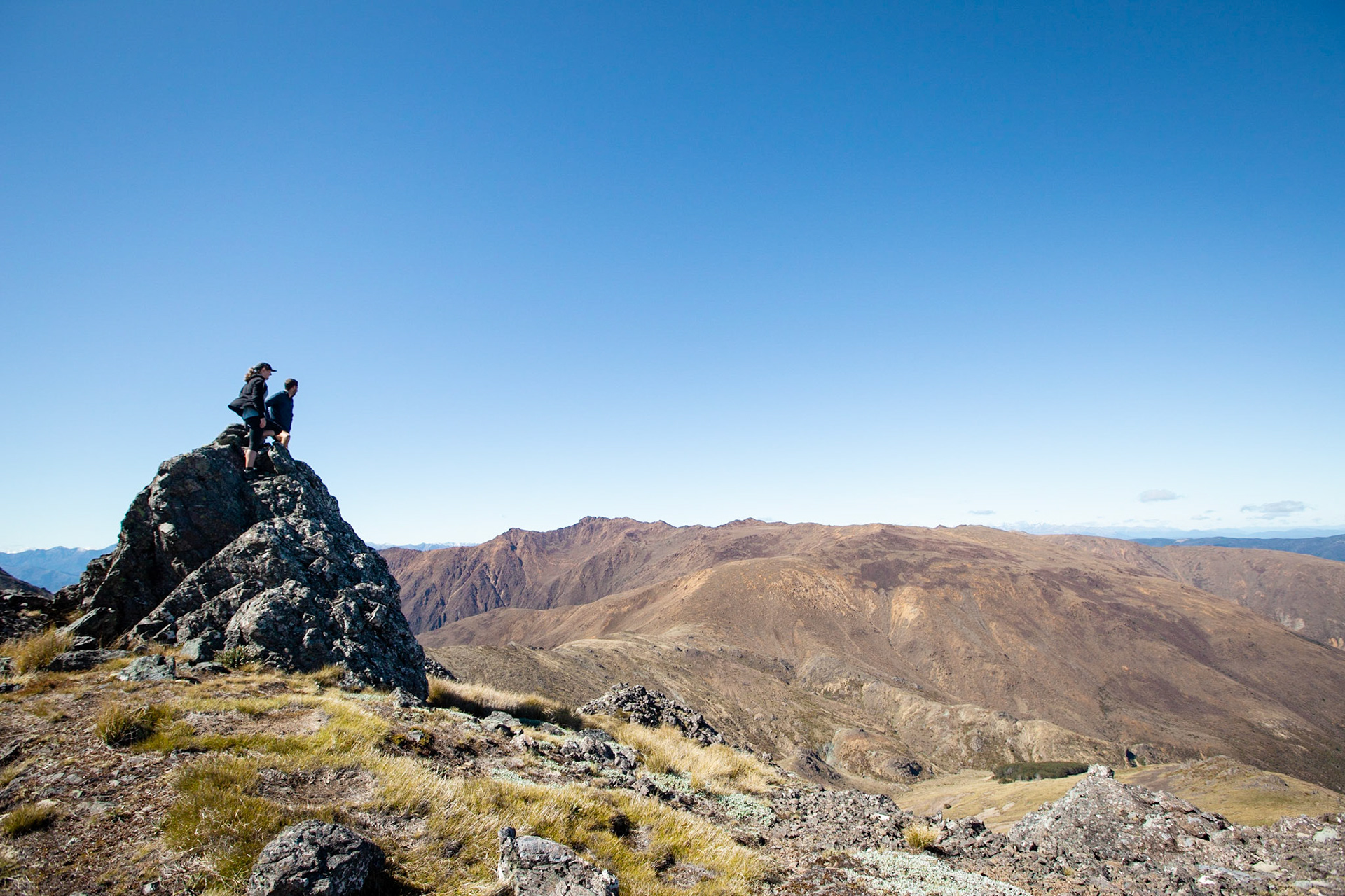 A gentle three day tramp into the Red Hills Range, staying at Hunter's Hut and summiting Mt Ellis and peak .1642